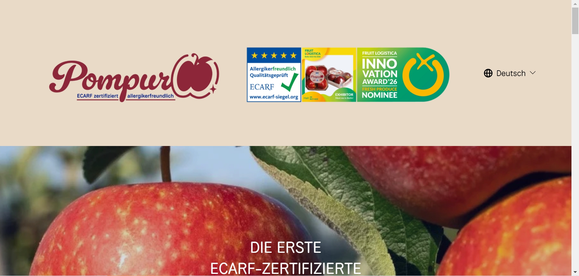 POMPUR代表着经过认证的、适合过敏患者的苹果产品。我们拥有ECARF认证的苹果品牌,让数百万苹果过敏患者能够首次放心享用新鲜苹果。